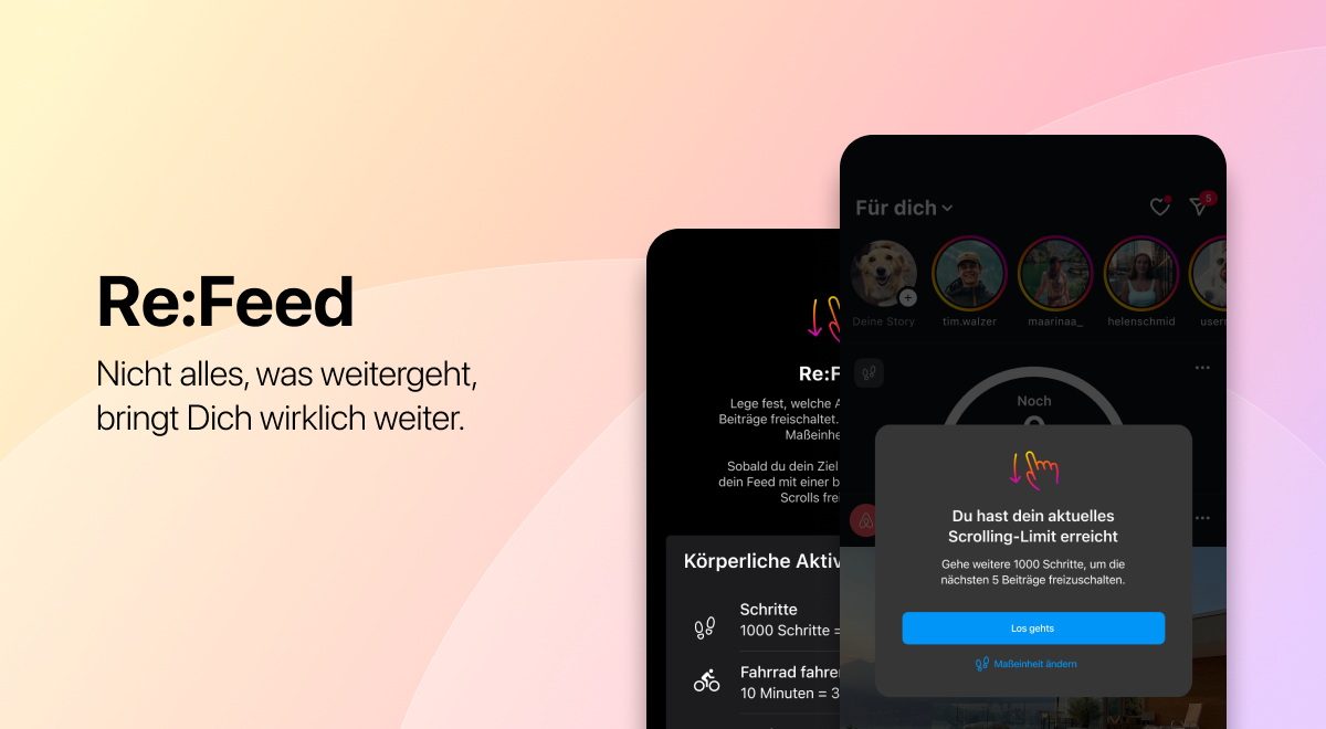 Der Algorythmus erkennt, wann wirklich im Dokument gearbeitet wird. Nur dann läuft der Timer, der den Insta-Feed wieder freischaltet.