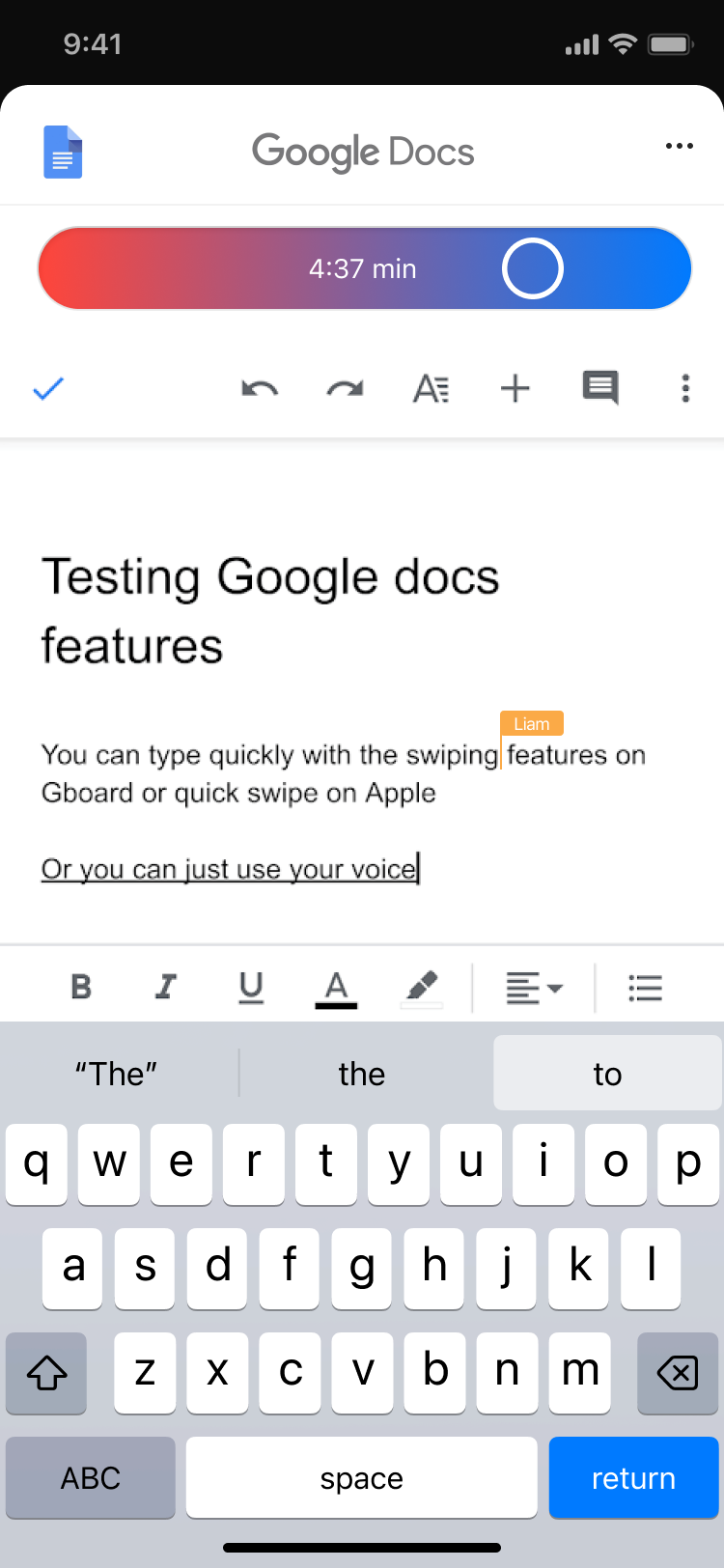 Der Work Mode startet automatisch mit dem Ende der Scroll-Time im Feed. Anstelle eines Beitrags erscheint ein Google Doc.